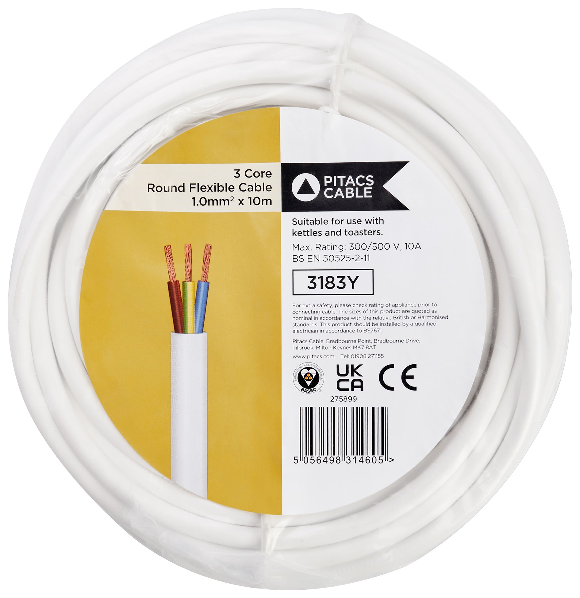 3 Core 3183Y White Round Flexible Cable 1.0mm² 10m Wickes.co.uk